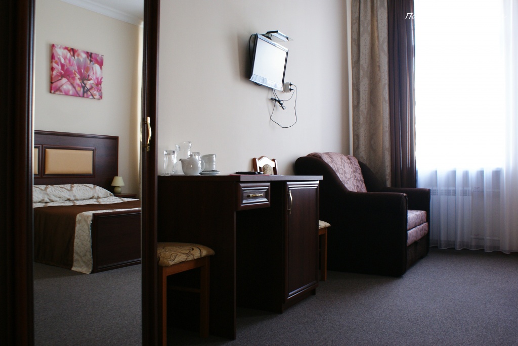 Из окон номеров этого класса открывается вид на аллею или во двор гостиницы, что гарантирует, так же, тишину и спокойствие вашего проживания.